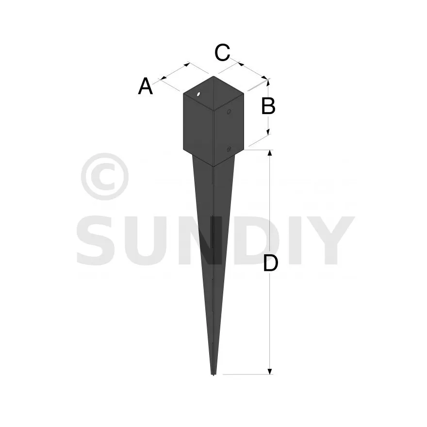 Pied de poteau carré à enfoncer - Finition NOIRE - Réf. PPJNET70/620