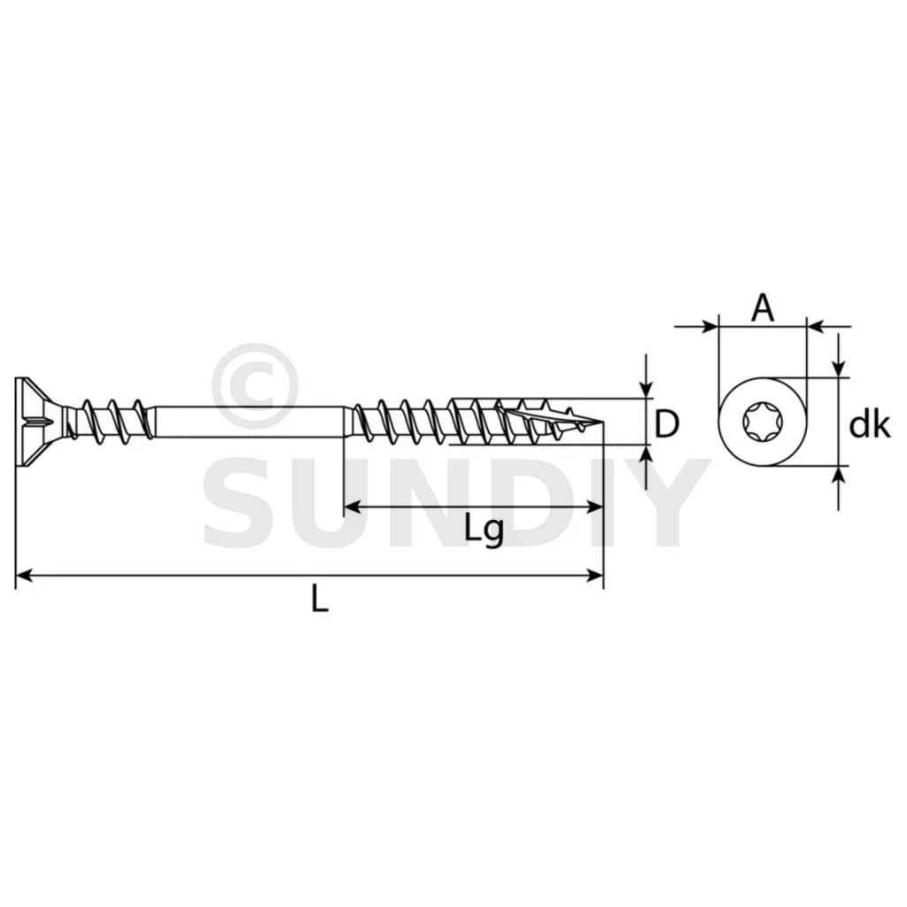 Tête fraisée avec crans de fraisage | Noyage affleurant de la tête de vis, Noyage facile et net de la tête de vis, La longueur utile correspond à la longueur totale de la vis | Aspect parfait, Nécessite moins de force et d’énergie |