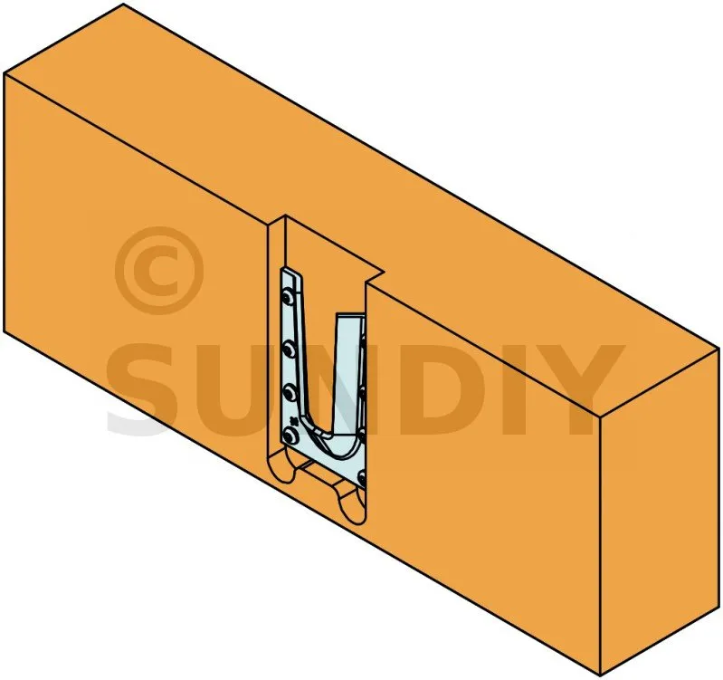 L’étrier à queue d’aronde en acier ETSN est un connecteur innovant et très discret. Il permet de reproduire l’esthétique d’un assemblage traditionnel à queue d’aronde. La partie femelle est placée sur la poutre porteuse avec des vis CSA ou des pointes CNA, tandis que la partie mâle est fixée à l’extrémité de la poutre portée avec les vis à tête plate.