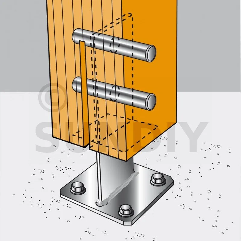3. Percer transversalement le poteau pour y insérer les broches (diamètre de perçage fonction du diamètre de la broche).