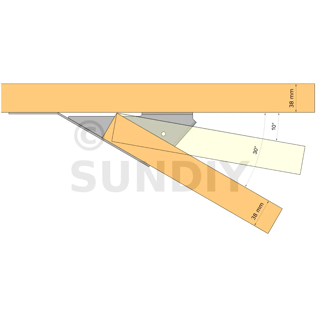Le sabot à angle variable a été conçu pour des assemblages allant de 10° à 30° ou de 15° à 30°. Il convient pour des projets architecturaux nécessitant une grande précision dans les connexions angulaires, tels que les charpentes complexes, les toitures irrégulières ou les extensions non conventionnelles,