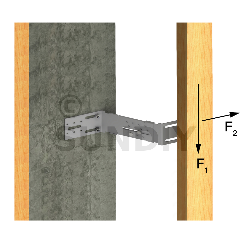 L’équerre AB45C permet de fixer le chevron d’angle, dans le cas d’un angle sortant. Ce chevron d’angle appartient à l’ossature secondaire de la structure. Cette ossature sert de support aux revêtements extérieurs de type bardage.