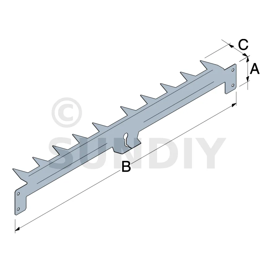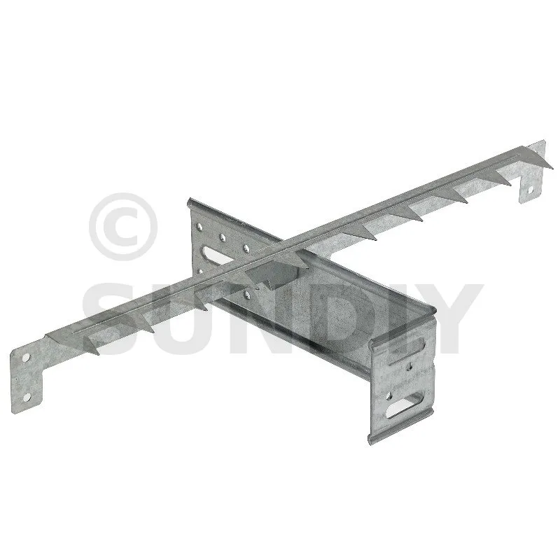 Il faut compter une griffe par équerre pour une bonne fixation de l’isolant. Peut-être coupée pour obtenir deux peignes à fixer sur les chevrons grâce aux deux ailettes qui permettront le maintien de la seconde couche d’isolation entre chevrons.