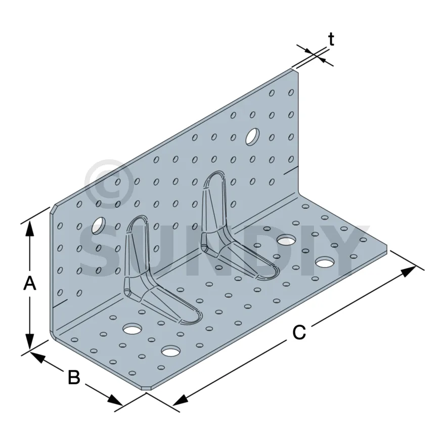 | A (hauteur) | B (profondeur) | C (largeur) | t | Ø5 | Ø14 | Ø5 | Ø14 | |