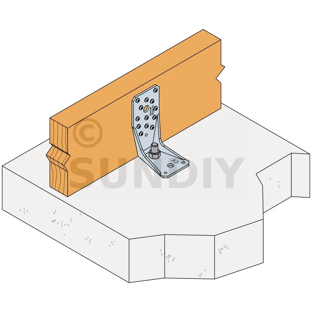 Voir la gamme d’ancrage Simpson Strong-Tie pour trouver le produit adéquat. Les solutions d’ancrage typiques sont BOAXII, SET-XP, WA, AT-HP et dépendent du type de béton, l’entraxe et les distances aux bords.