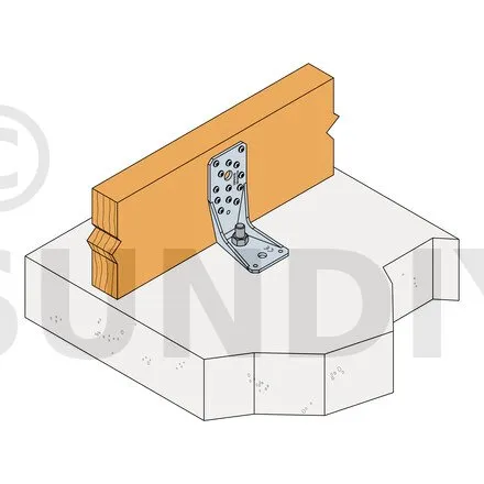 Voir la gamme d’ancrage Simpson Strong-Tie pour trouver le produit adéquat. Les solutions d’ancrage typiques sont BOAXII, SET-XP, WA, AT-HP et dépendent du type de béton, l’entraxe et les distances aux bords.