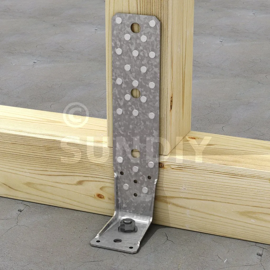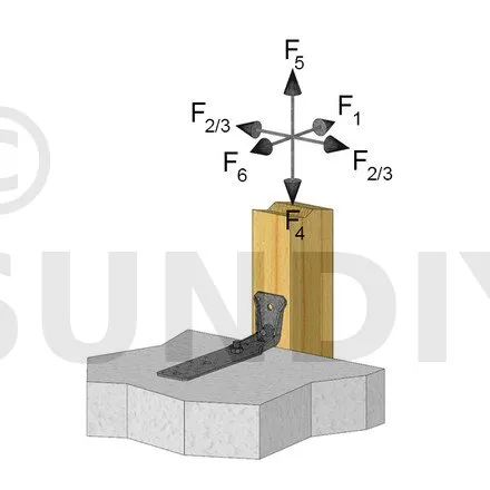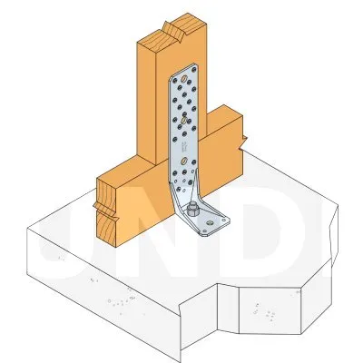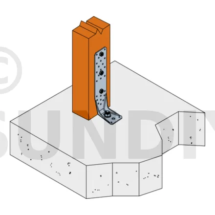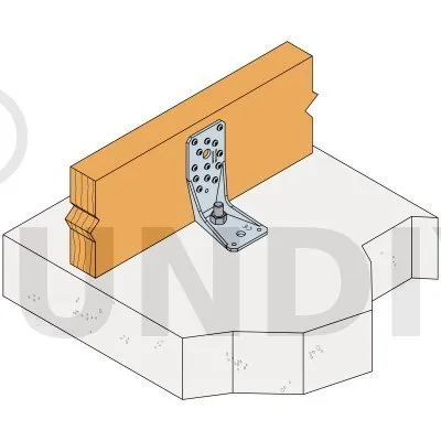 Voir la gamme d’ancrage Simpson Strong-Tie pour trouver le produit adéquat. Les solutions d’ancrage typiques sont BOAXII, SET-XP, WA, AT-HP et dépendent du type de béton, l’entraxe et les distances aux bords.