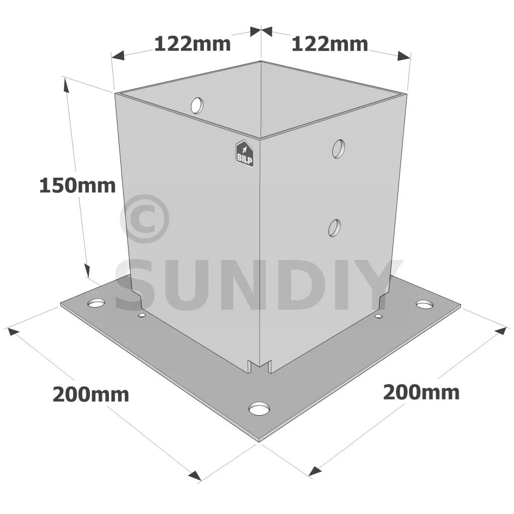 Pied de poteau carré à boulonner - Finition GALVANISEE - Réf. PPJBT120