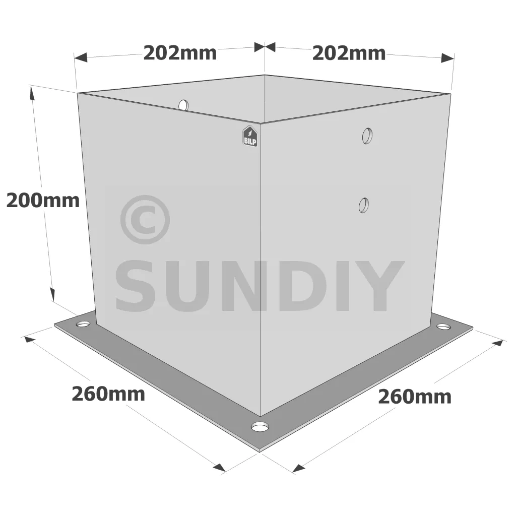 Pied de poteau carré à boulonner - Finition GALVANISEE - Réf. PPJBT200