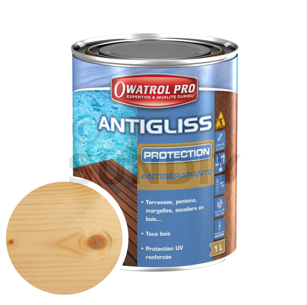 mélanger hélicoïdal approprié). - Sur support préparé, appliquer une couche d’ANTIGLISS sur la totalité de la lame dans le sens des fibres du bois.