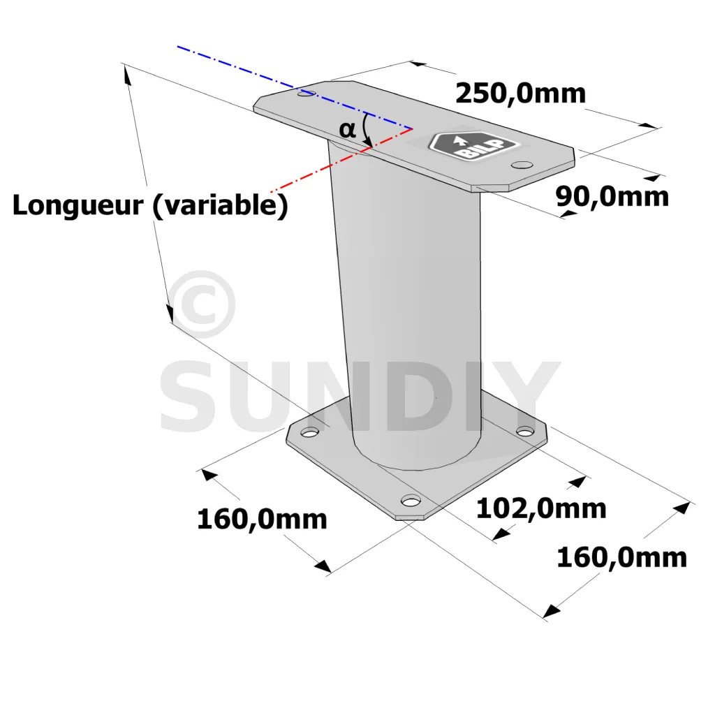 Poteau structurel OSP - D102mm - Platine haute rectangulaire 90x250mm - Embase 160x160mm