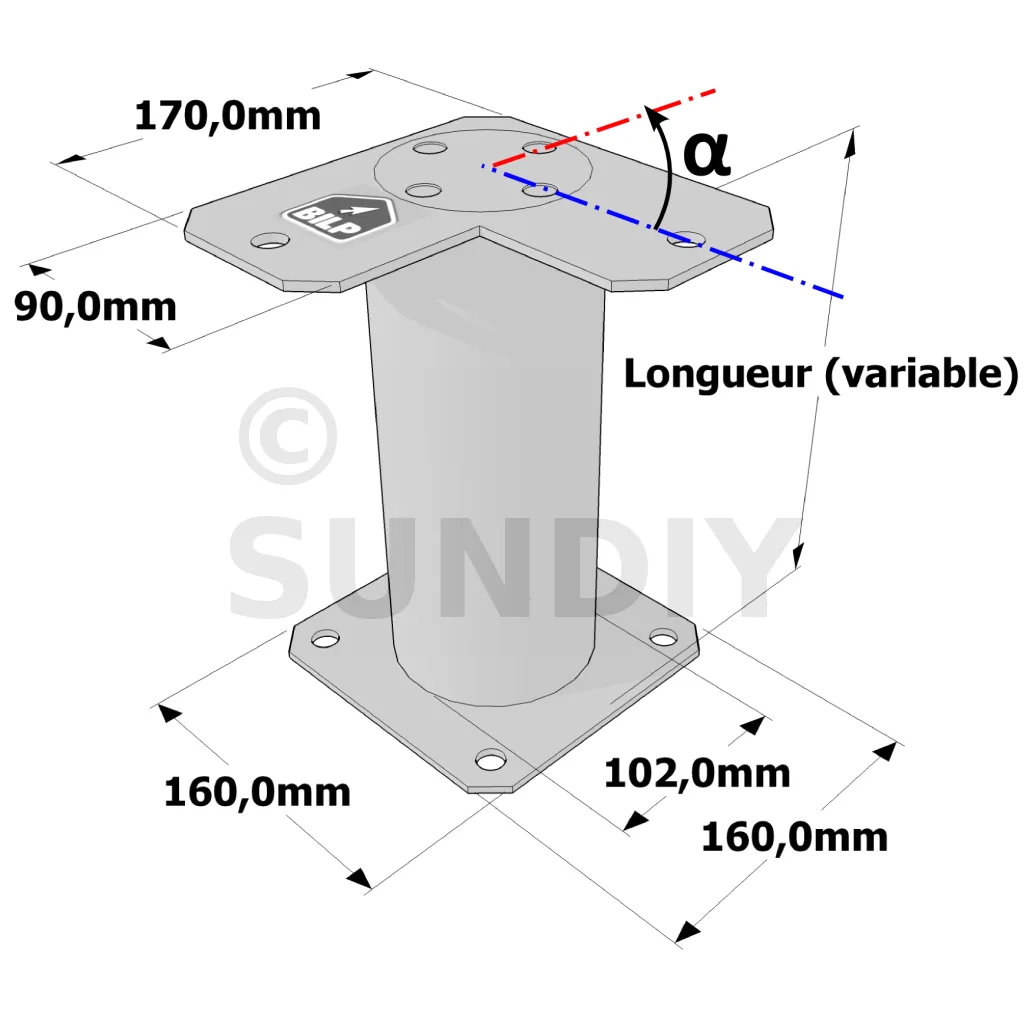 Poteau structurel OSP - D102mm - Platine haute en angle 90x170mm - Embase 160x160mm
