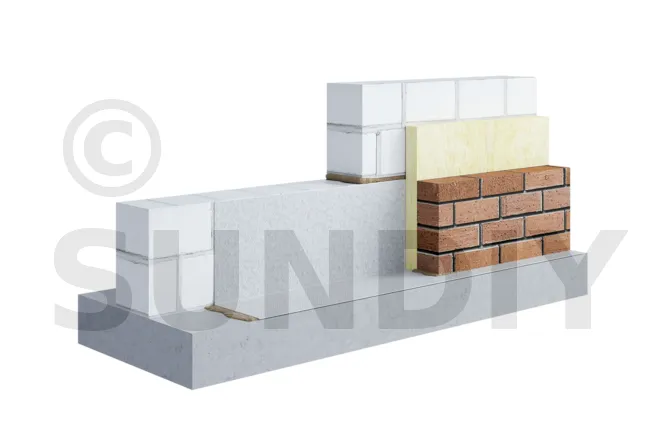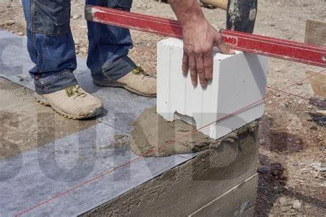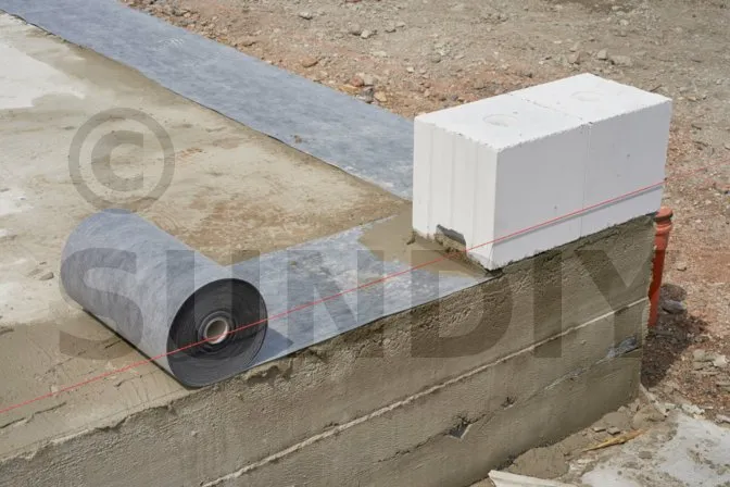 - Ouvrages en maçonnerie (DTU 20.1) : La bande DELTA®-PROTEKT est placée entre deux couches de mortier de ciment, à une hauteur d’au moins 15 cm au-dessus du niveau final du sol extérieur.