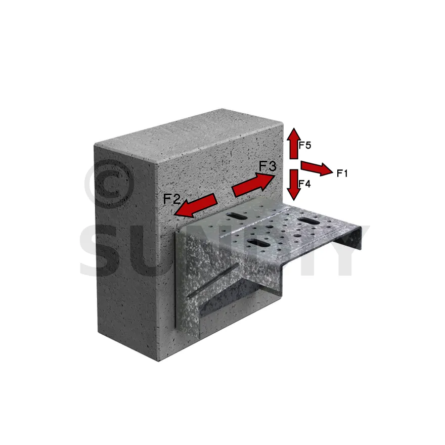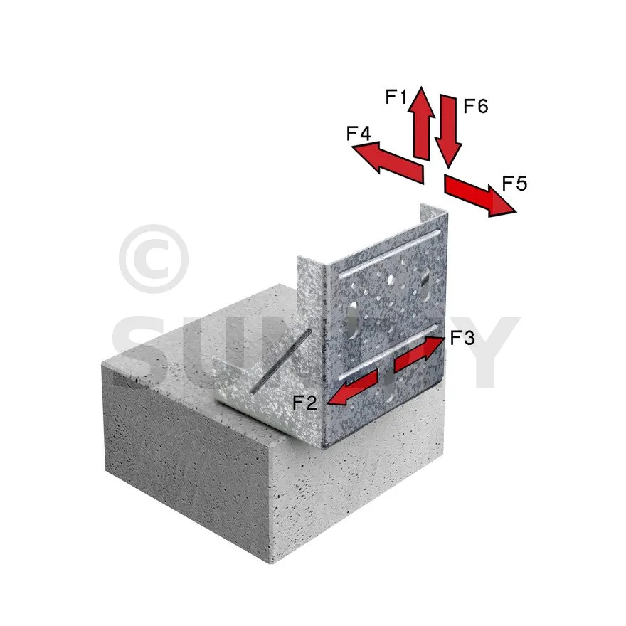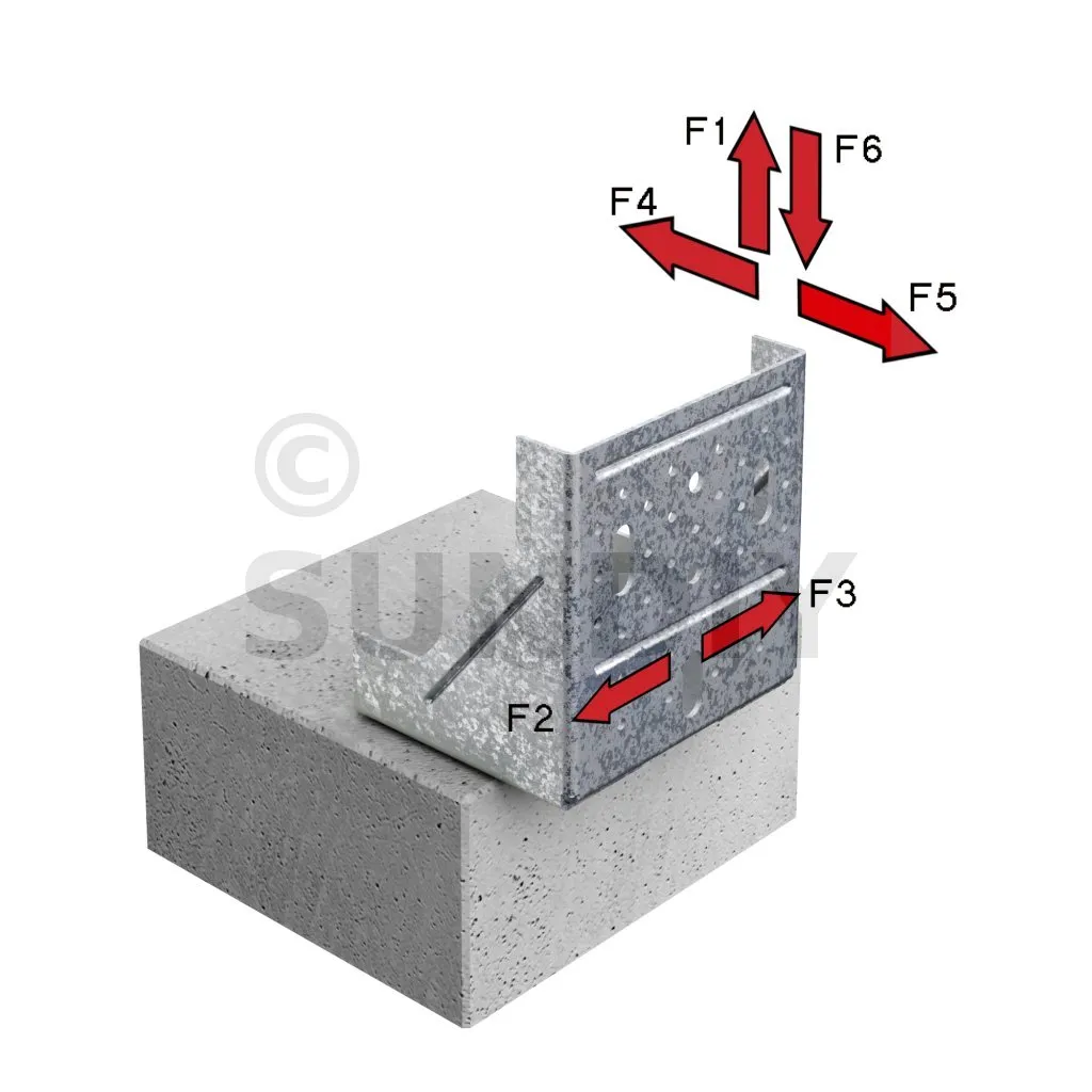 Ce connecteur a été développé pour être utilisé avec des murs rideaux bois, fixés sur dalle béton. Il peut être utilisé dans plusieurs configurations en fonction des besoins. Sa forme particulière lui permet de reprendre des charges importantes sans aucune déformation.