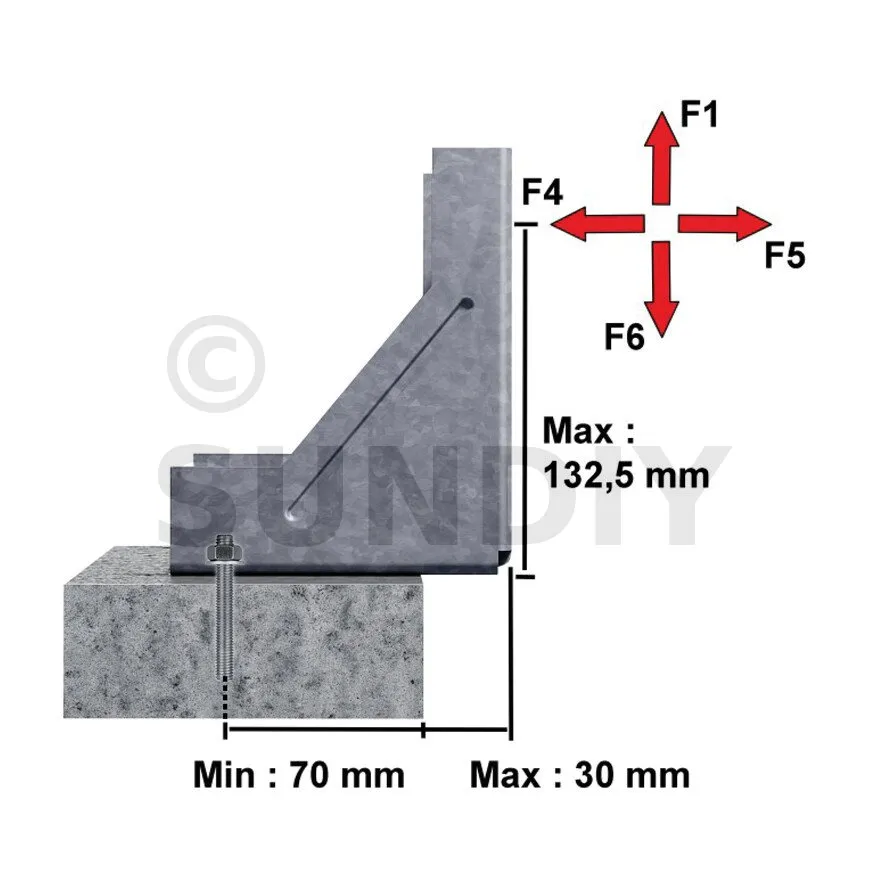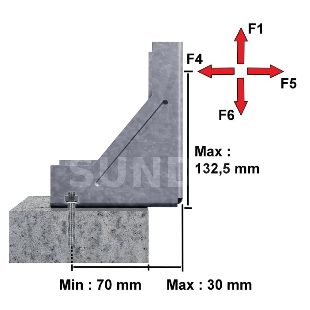 4. Si le support est en béton, fixer l’équerre en respectant les préconisations de pose de l’ancrage choisi.