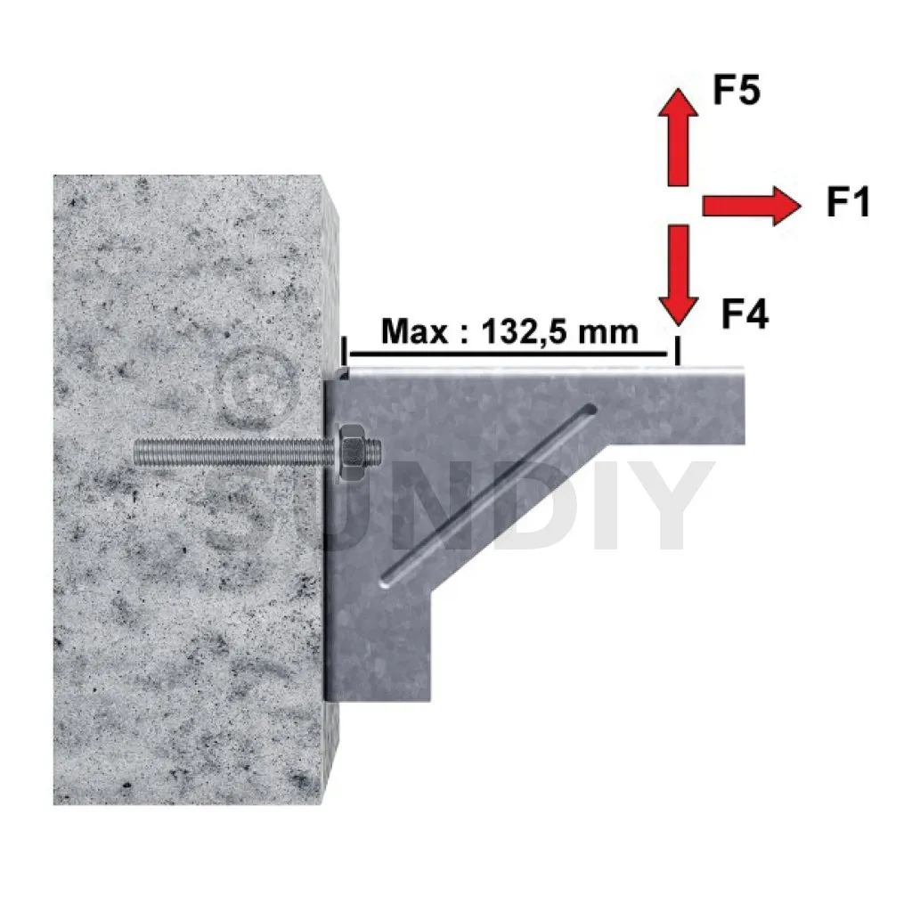 Compte-tenu des charges à reprendre, il est indispensable de vérifier la résistance des ancrages et du béton. En effet, dans certains cas, la résistance de l’ACW155 peut être limitée par la reprise de charge du béton et des ancrages.