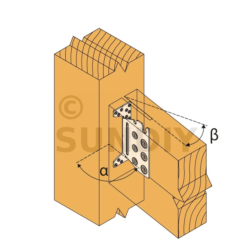 L’étrier TUS à âme intérieure permet un assemblage invisible. Plié sur demande, convient aux applications avec un angle allant de 30 à 85°. L‘encoche en tête facilite la pose sur le chantier.