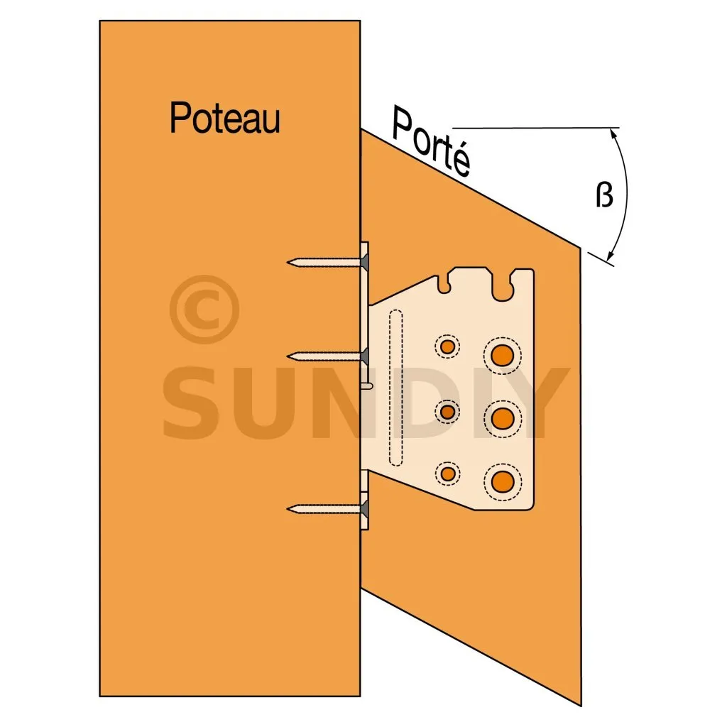 - Fixation solive sur poteau - clouage total - avec pente et angle α=60°Porteur : 5XCNA4,0x50 - Porté : 4XSTD8