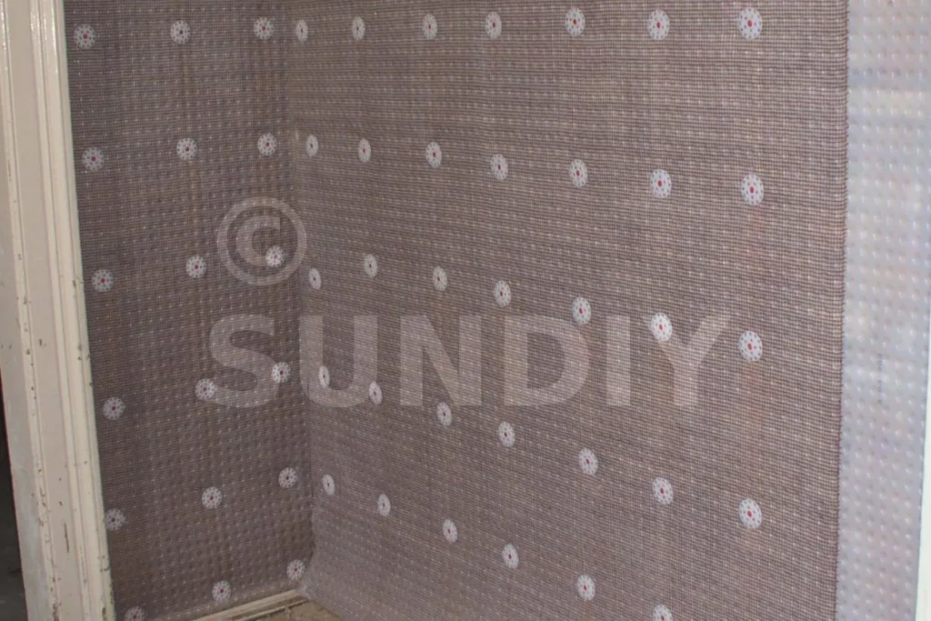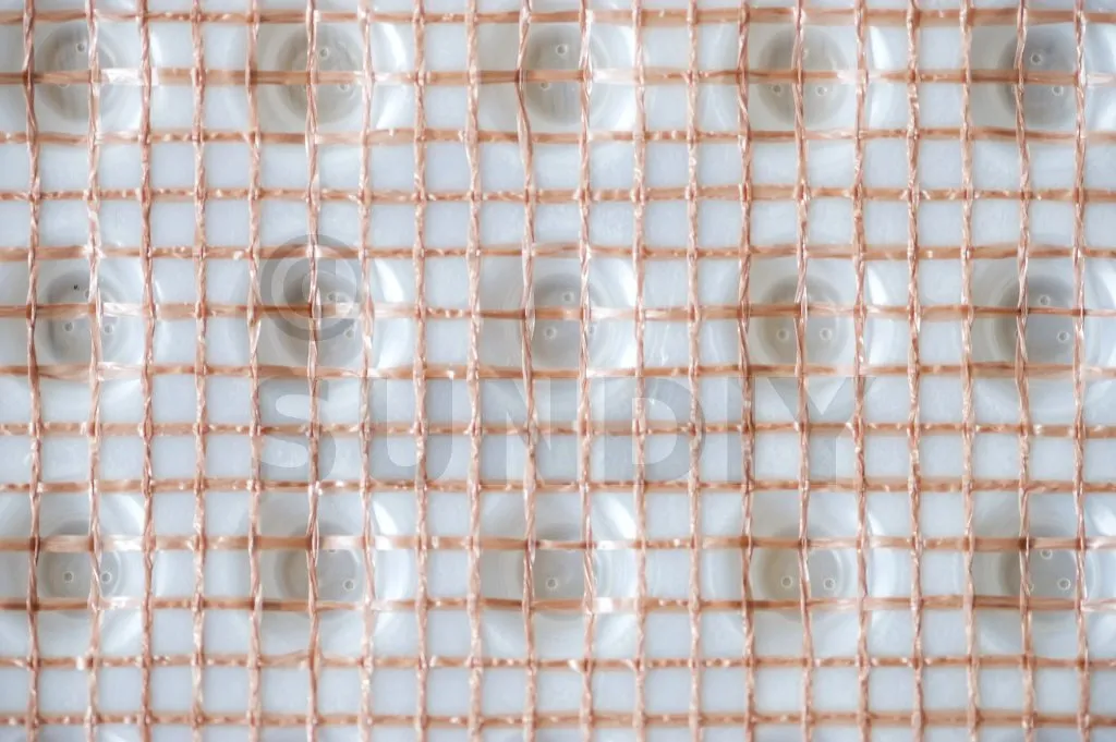 - MatériauNappe à excroissances en polyéthylène haute densité associée à un treillis en polyéthylène brun.