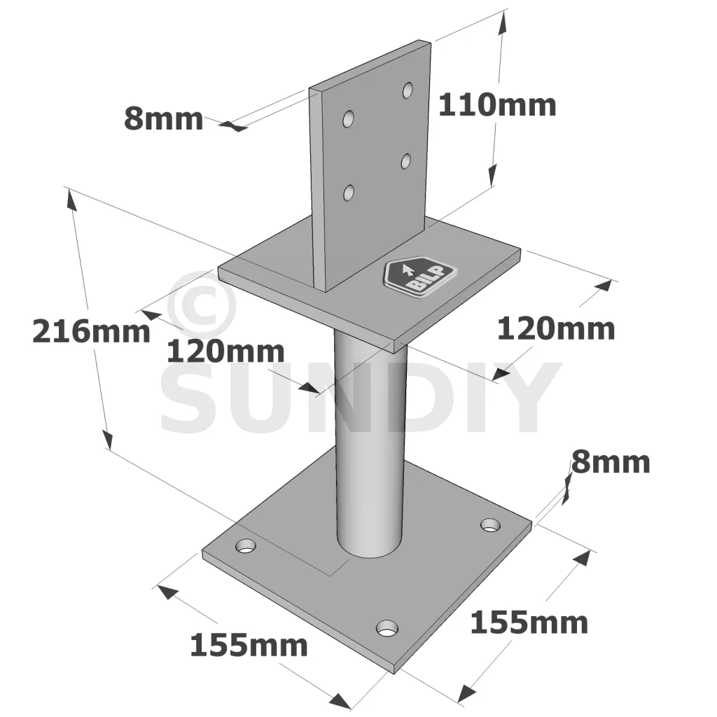 Pied de poteau fixe forte charge PBH - Réf. PBH120G