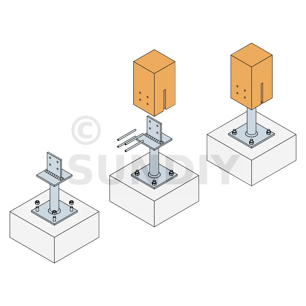 - La longueur des broches correspond à la section du poteau.