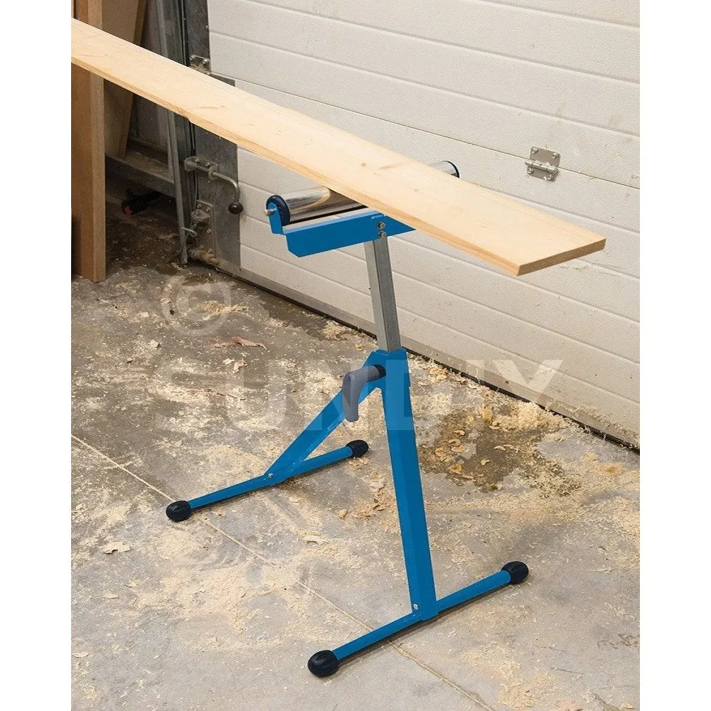 Support avec rouleau pour supporter les pièces de travail de grande taille et d’un poids pouvant aller jusqu’à 60 kg. Rouleau chromé à embase en acier ultra-résistant. Hauteur réglable de 685 à 1 080 mm.