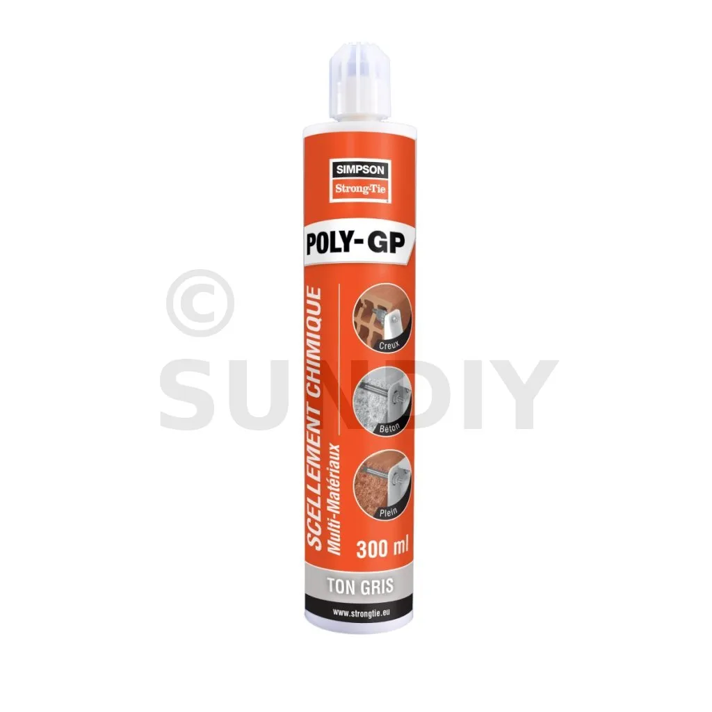La résine multi-matériaux POLY-GP est un ancrage chimique permettant de fixer les tiges filetées dans le béton C20/C25 à C50/60 et toutes les maçonneries creuses et pleines.