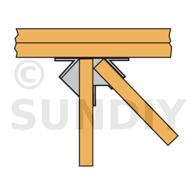 L’étrier pour croupe THJA26 est utilisé dans la fermette de section 38mm. Il permet la réalisation d’une croupe en assemblant les demi-fermes d’arêtier et d’empannon.