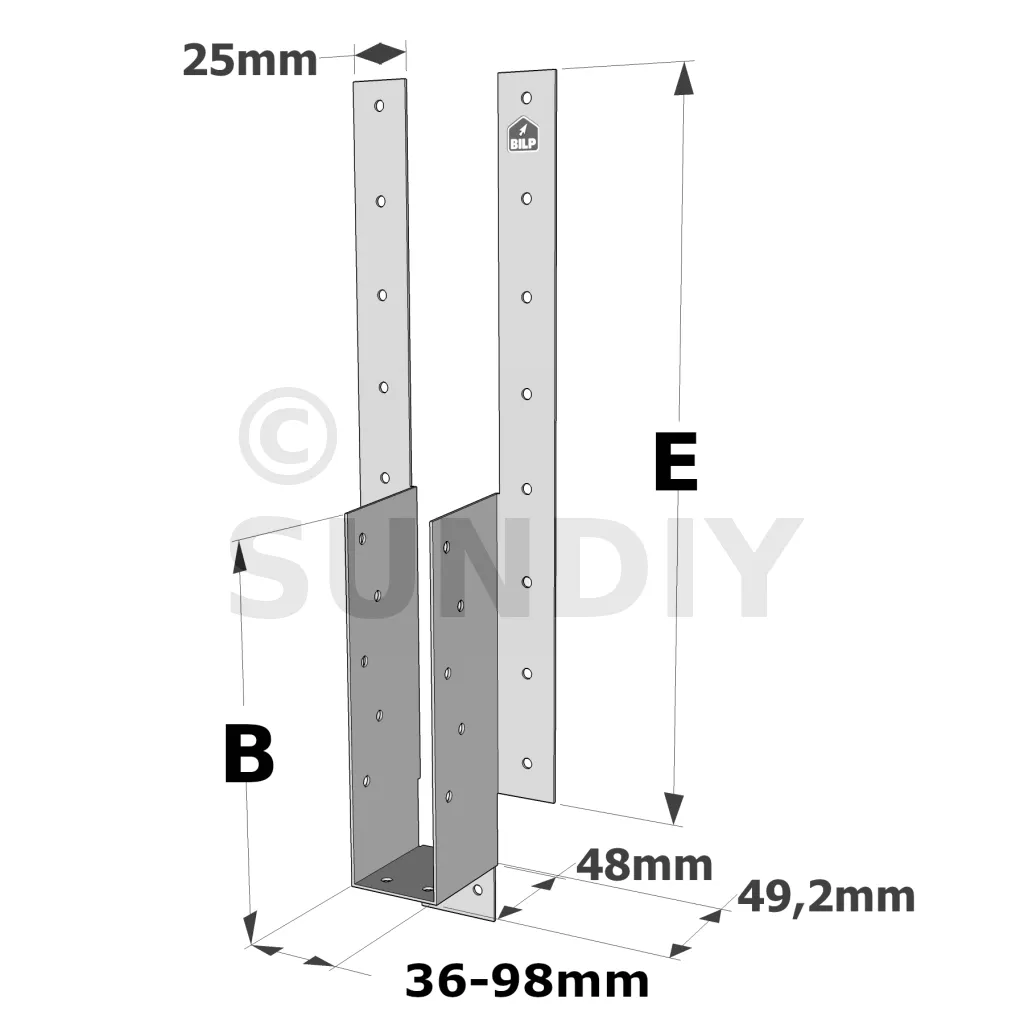 - Ailes pliées pour ajuster la hauteur du sabot par rapport à l’élément porteur. Clouer les ailes rabattues.