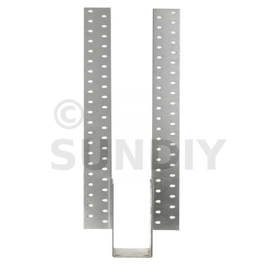 - Ailes pliées pour ajuster la hauteur du sabot par rapport à l’élément porteur. Clouer les ailes rabattues.