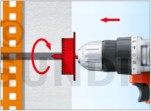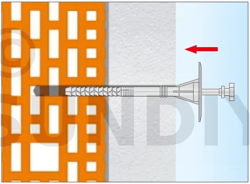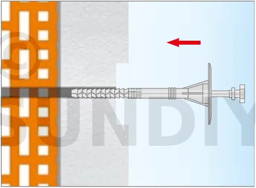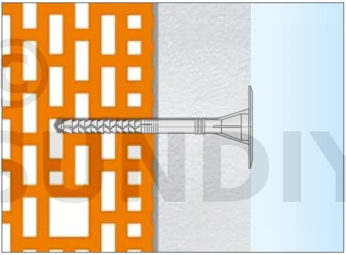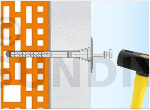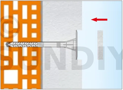 - Enfoncer le corps de la fixation de manière à ce que la rondelle de fixation soit orientée vers le matériau d’isolation thermique.