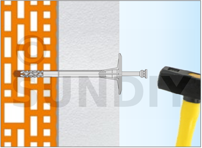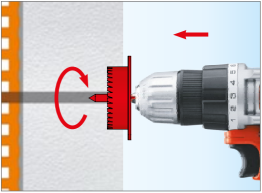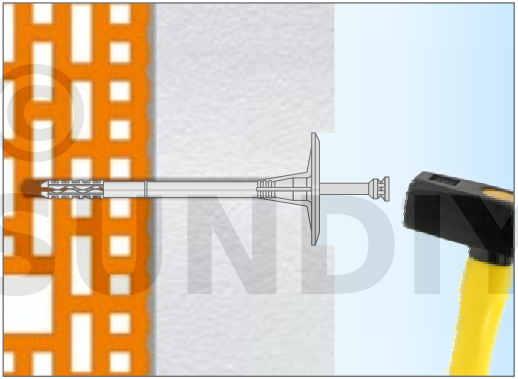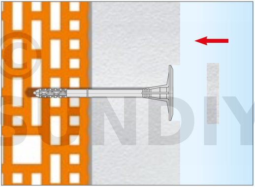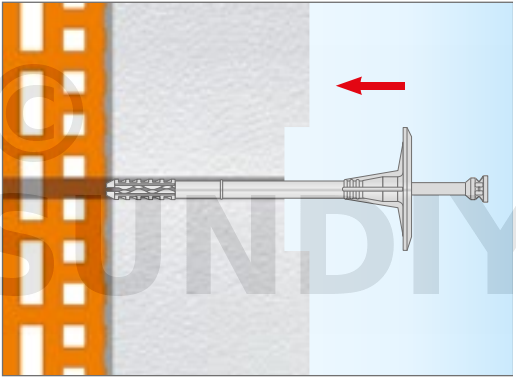- Enfoncer le corps de la fixation de manière à ce que la rondelle de fixation soit orientée vers le matériau d’isolation thermique.