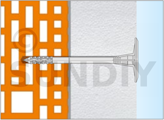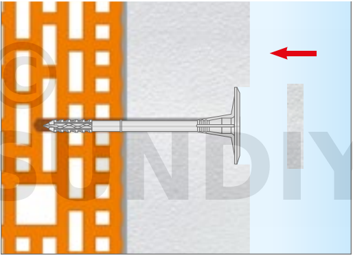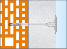 Fixation de l’isolation en polystyrène PSE (polystyrène expansé), PSX (polystyrène extrudé), laine minérale et feutre à lamelles MW.