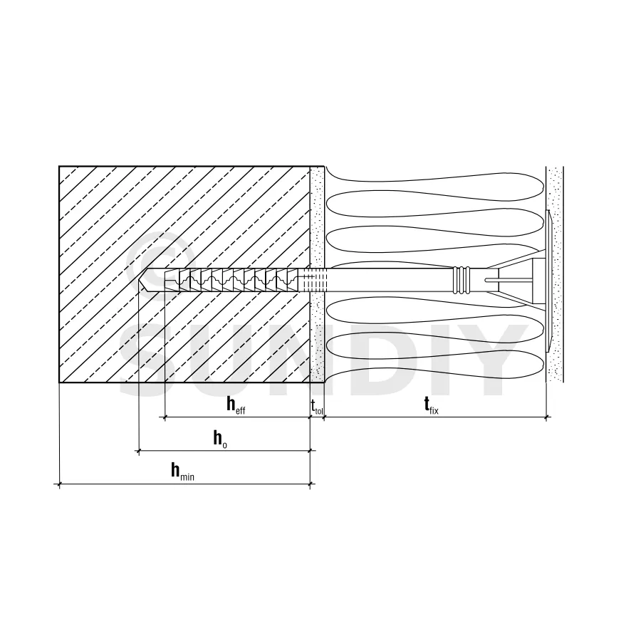 - Profondeur d’ancrage (hef)70mm