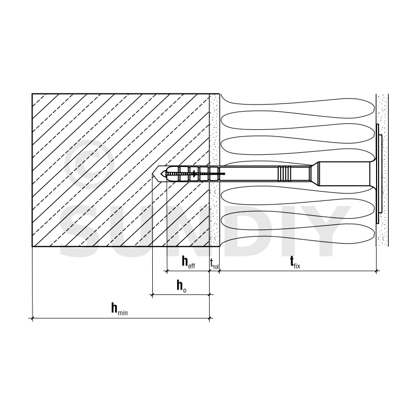 Béton cellulaire (AAC) (substrat de type E) - Profondeur d’ancrage (hef)Support de type A, B, C, D : 25mm,