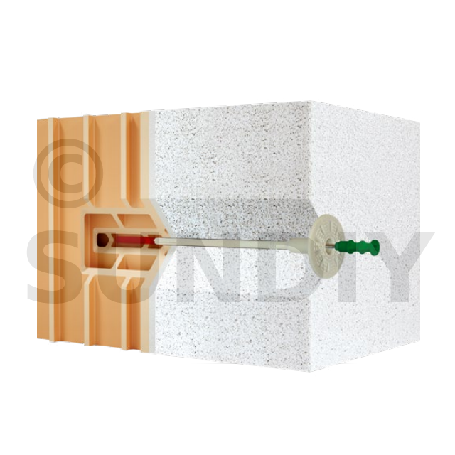 Ce connecteur moderne est spécialement conçu pour fixer le polystyrène et la laine minérale dans tous les matériaux de la tête, en respectant les normes de ETAG 014. Il offre l’avantage d’une faible profondeur d’ancrage et peut être utilisé en association avec la collerette d’appui TDX.