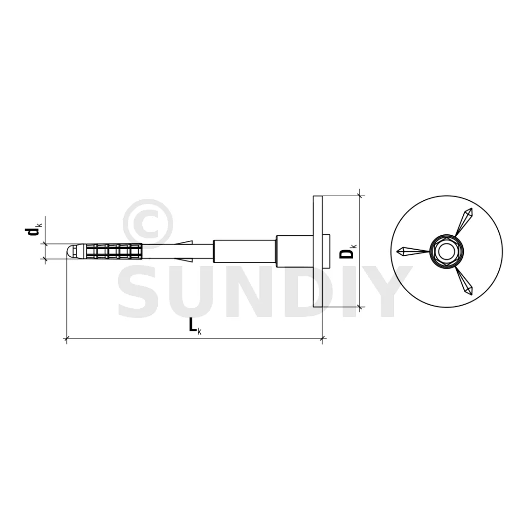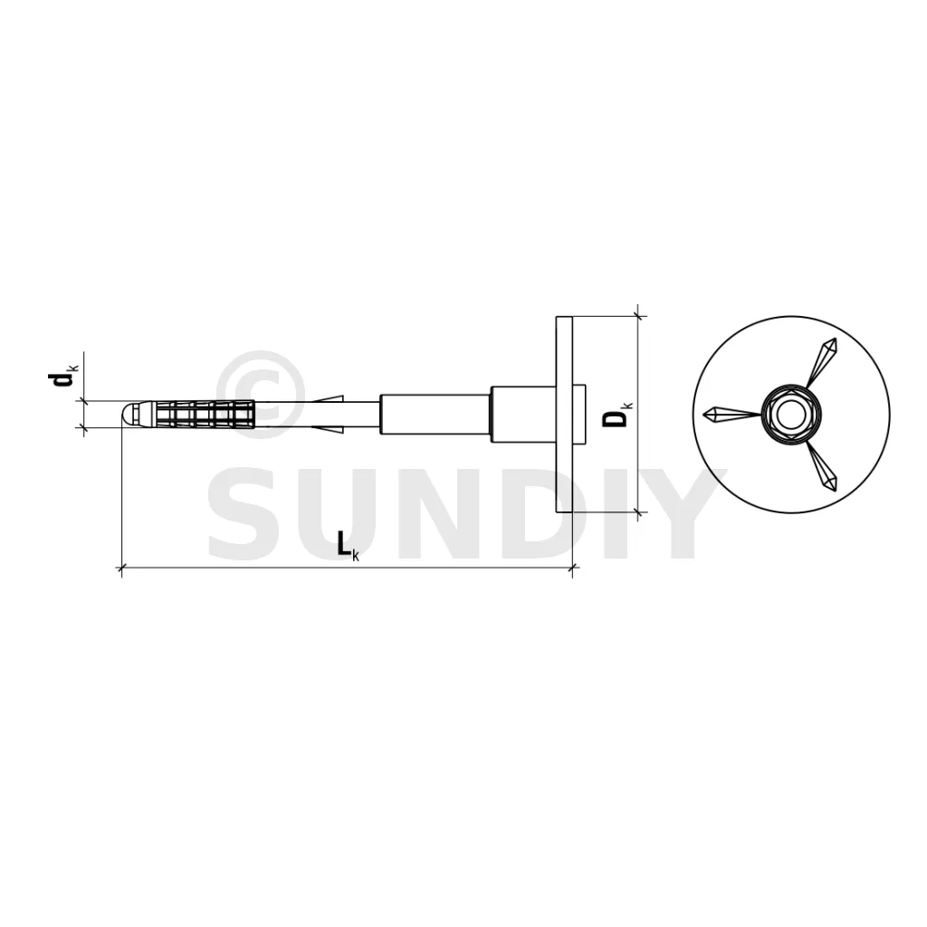 Cheville d’isolation préassemblée à visser, avec clou en métal et rondelle d’appui télescopique - Diamètre 8mm