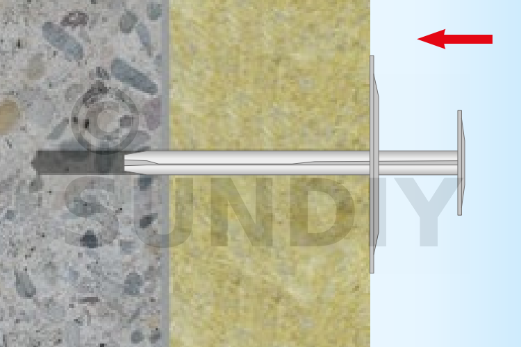 Fixation de la laine minérale.