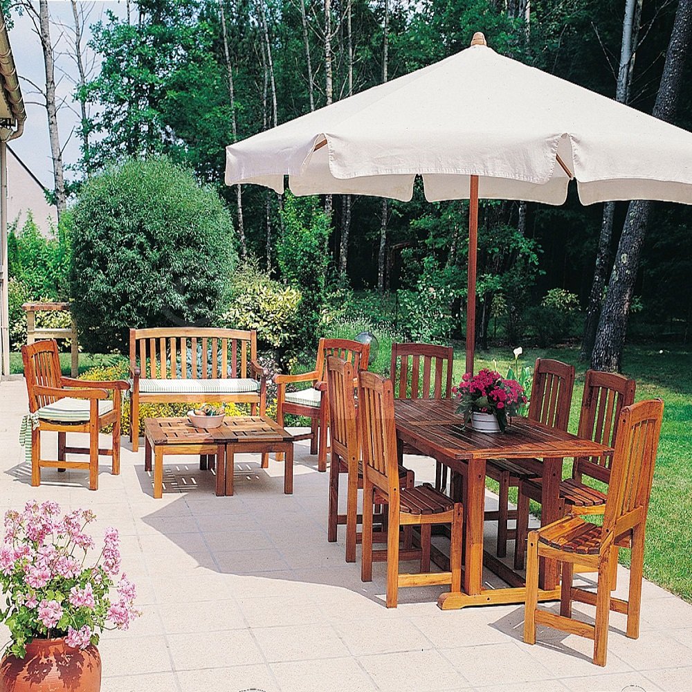 - Bois exotiques : teck et autres essences utilisées pour le mobilier de jardin hors Keruing.
