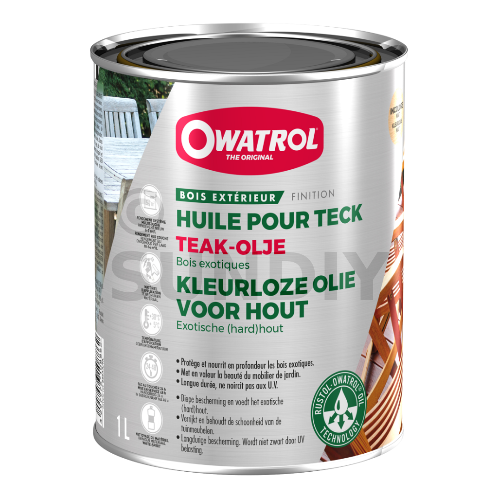 - Permettez à vos bois exotiques de résister aux agressions extérieures (humidité, soleil, tache) avec TEAK-OLJE. Cette huile pour Teck destinée à votre mobilier de jardin permet de protéger et de nourrir en profondeur votre bois.