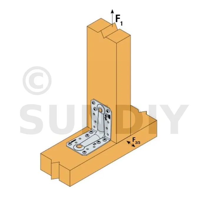 Seuls les efforts F1, F2 et F3 pour des assemblages à 2 équerres sont présents sur cette fiche. Pour plus d’information, consulter l’ETE de Simpson Strong-Tie.