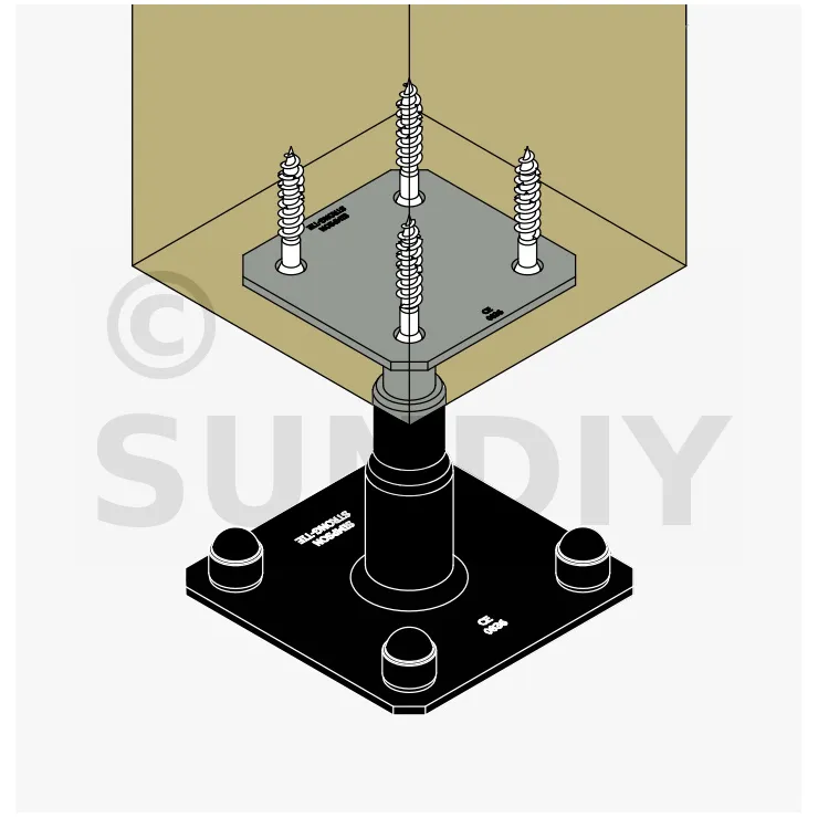1. Placer la platine supérieure du pied de poteau sous le poteau,