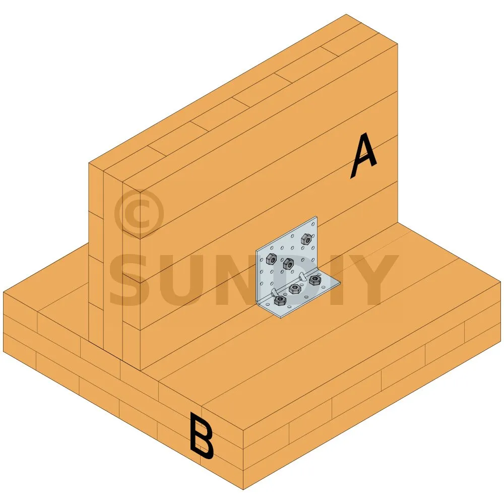 - Fixation bois/bois - type poutre/poutreAile A : 12 ; Aile B : 7 ; type : CNA Ø4.0x35 ou Ø4.0x50 mm - Assemblage avec 2 équerres