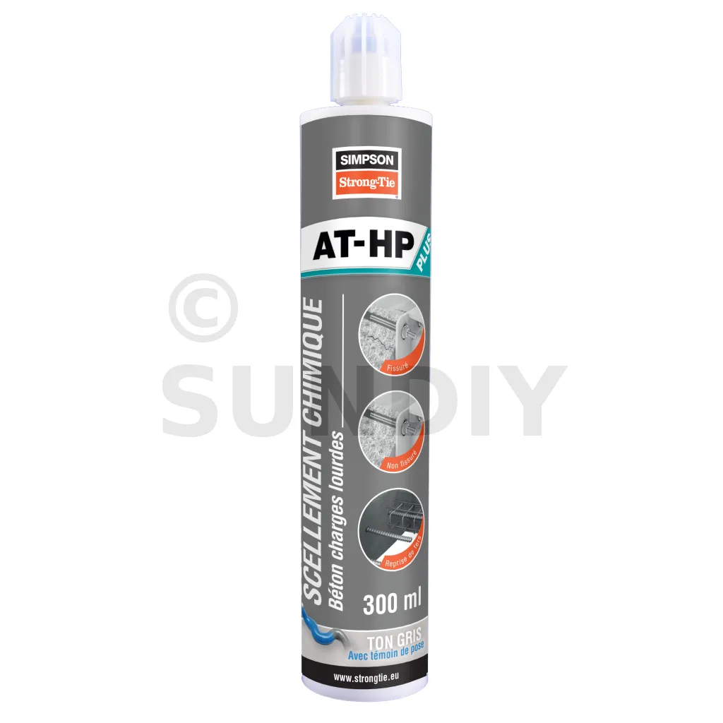 L’AT-HP PLUS est une résine béton charges lourdes, préconisée pour la fixation haute performance de tiges filetées ou de fers à béton dans le béton fissuré et non fissuré de C20/25 à C50/60.