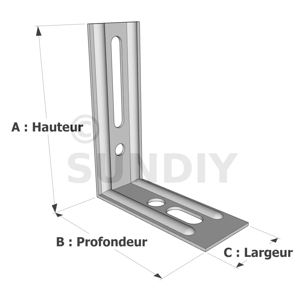 - Trous oblongs facilitant l’ajustement des assemblages,