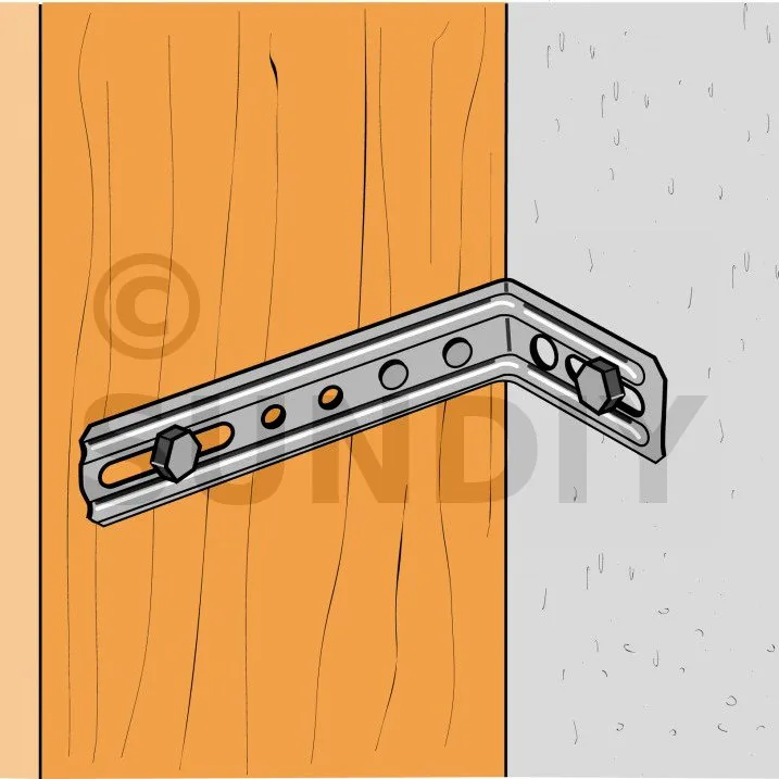 3. Si le support est en bois, l’équerre est aussi pointée ou vissée sur celui-ci,