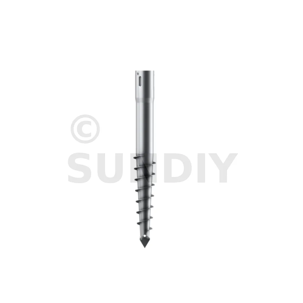 Une vis de fondation est donc composée d’un axe central avec :