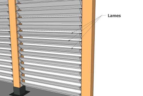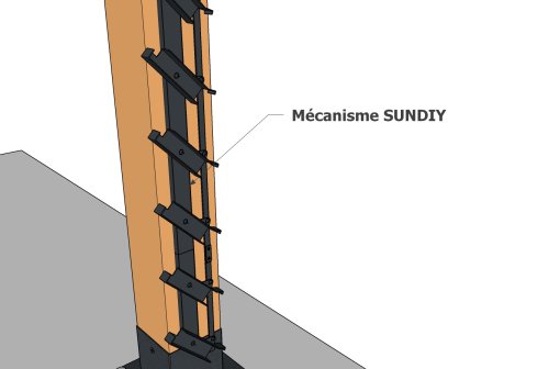 Incluant les mécanismes et lames SUNDIY + les poteaux BOIS lamellé-collé et connecteurs de poteaux SUNDIY.