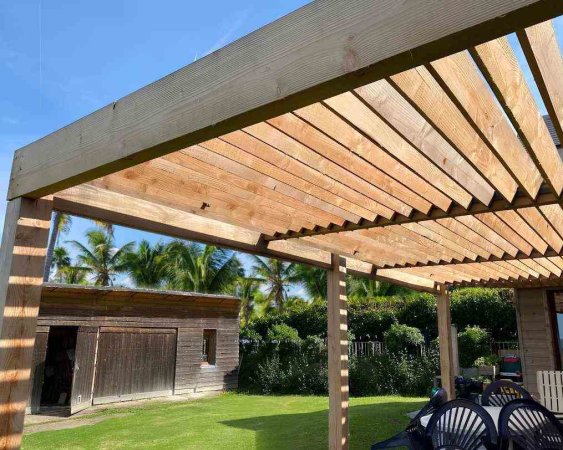 Les averses tropicales en Martinique peuvent être violentes. Avec nos pergolas en aluminium et bois, vous bénéficiez d’une structure robuste capable de résister aux intempéries. Les lames orientables permettent également de gérer efficacement l’écoulement de l’eau, évitant ainsi toute accumulation pouvant endommager votre mobilier de jardin.