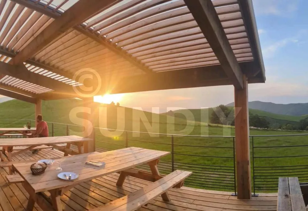 d'ESTERENCUBYJ'ai construit moi-même ma terrasse et ma pergola. Pour rester dans l'esprit authentique et chaleureux de ma bâtisse, j'ai choisi une structure entièrement en bois. Afin de garantir l'étanchéité, j'ai conçu ma pergola bioclimatique avec un toit en pente. J'ai opté pour une pergola à lames orientables avec une activation motorisée. Comme j'avais trois travées, j'ai installé deux vérins.Je tiens à exprimer mes remerciements à l'équipe SUNDIY pour la qualité de leurs produits ainsi que pour leur service remarquable. Grâce à SUNDIY, je peux offrir à mes clients une terrasse praticable toute l'année !